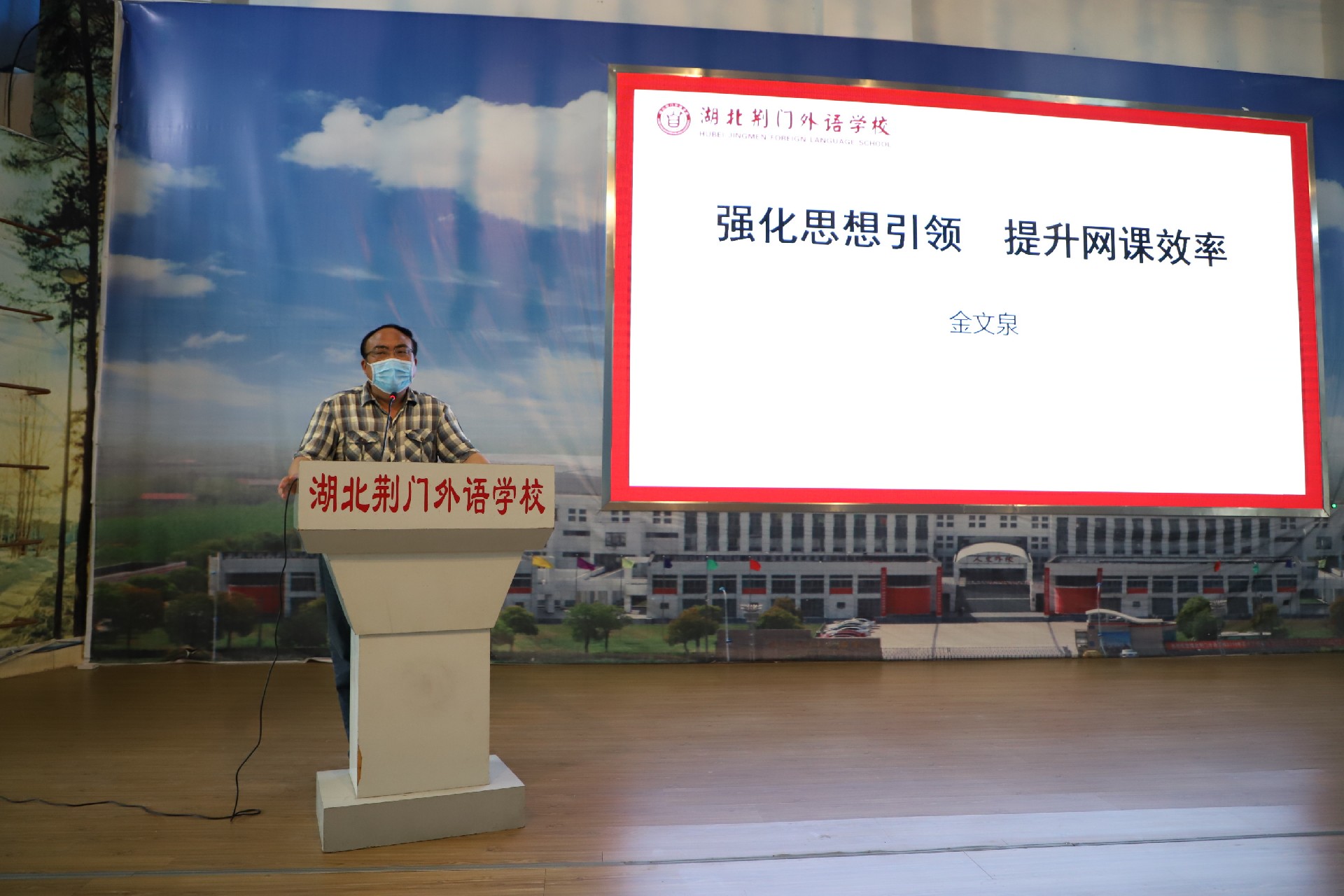 接下来,金文泉副校长发表了《强化思想引领 提升网课效率》的讲话。金校长充分肯定了班主任们在疫情防控和网络教学班级管理工作中所付出的努力,指出了存在的一些问题,同时也提出了整改措施和明确的要求。