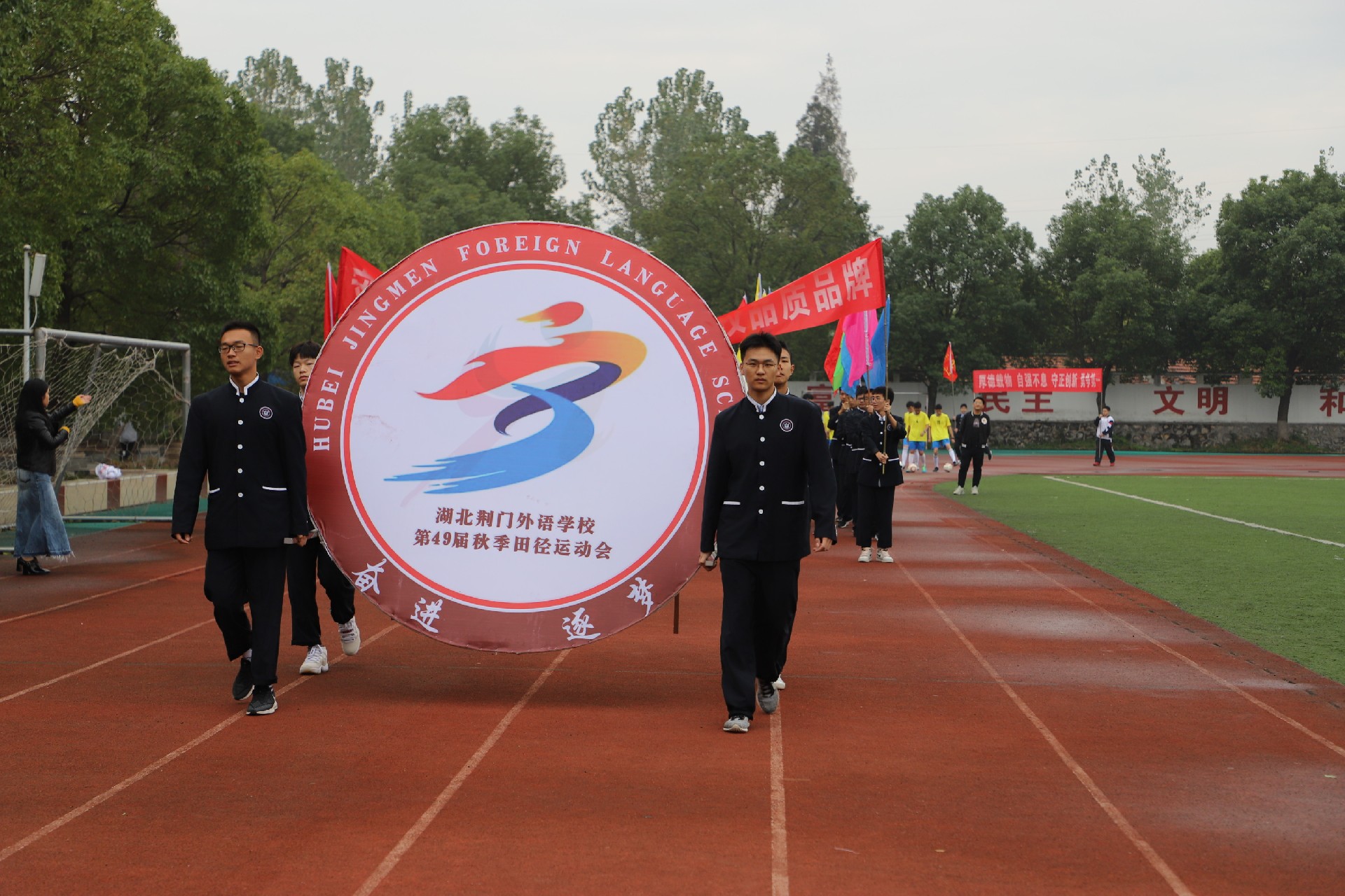 金秋十月,秋风送爽,桂花飘香,10月23日上午,湖北荆门外语学校以“奋进·逐梦”为主题的第49届田径运动会在激昂的运动员进行曲中拉开帷幕。