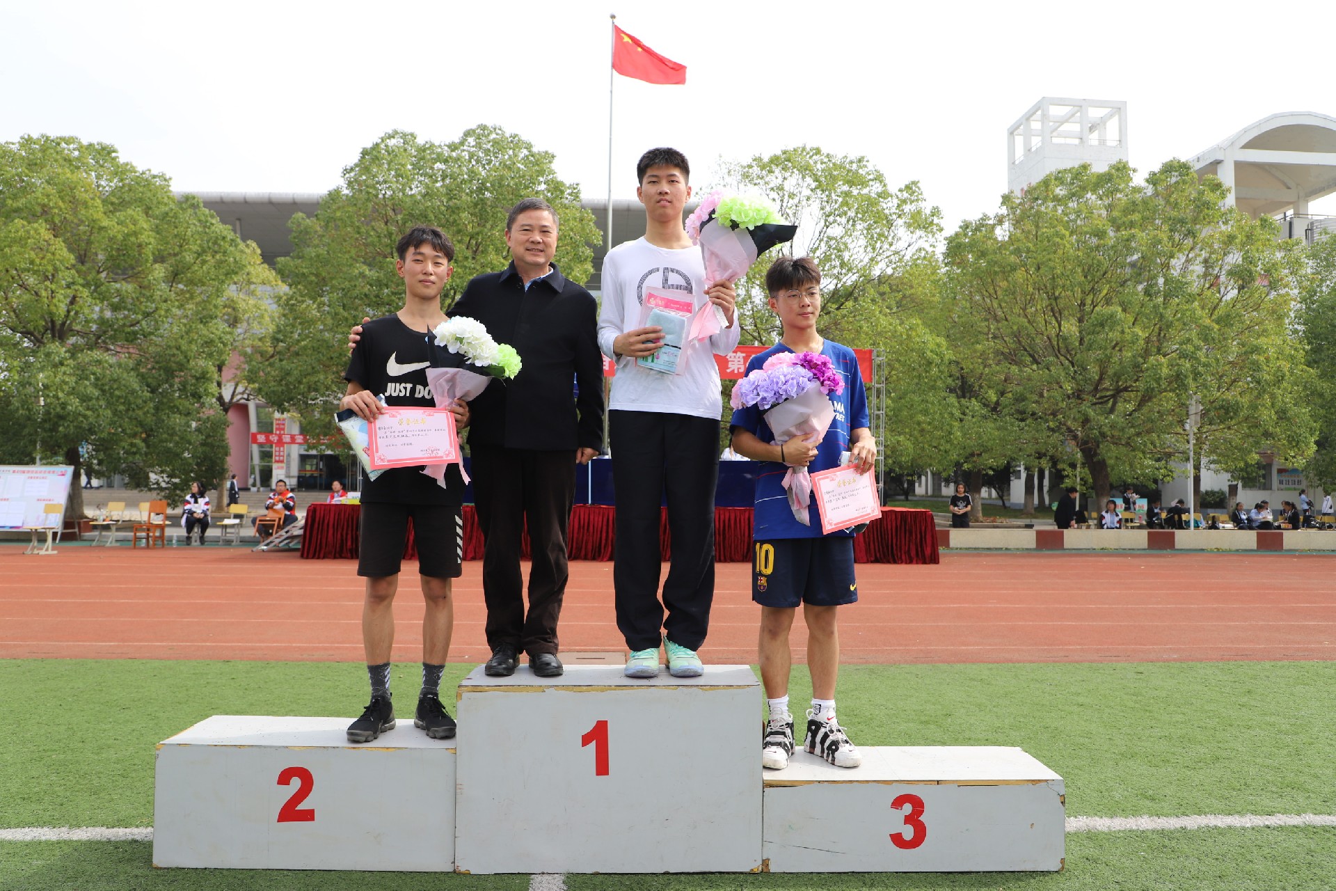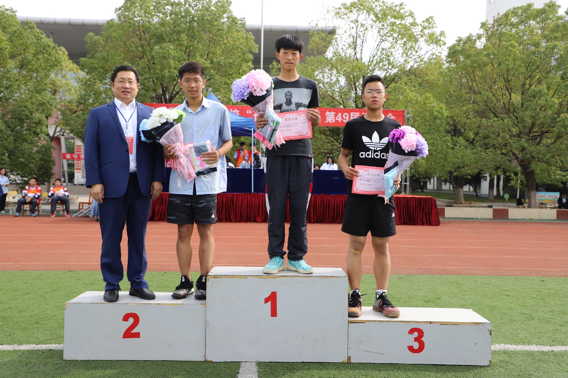 学校领导为获奖运动员颁奖。
