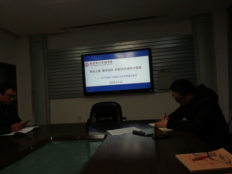 12月16日下午,南校区高三年级级长高权组织高三年级全体教师召开12月联考质量分析会。会上,高级长宣布了本次考试各班成绩评价情况,提出了下阶段高三年级整改措施。黄松华副校长作了“责任上肩 准字当头 打好元月调考攻坚战”为主题的动员报告。最后杨清校长对高三年级下阶段复习备考作要求。