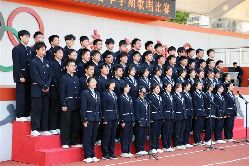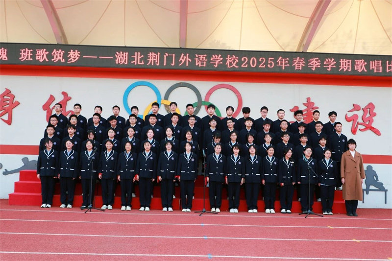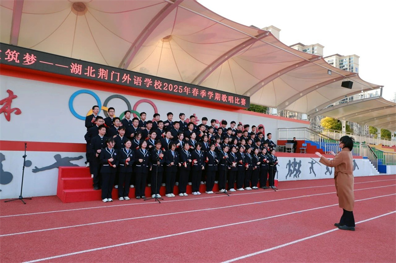 湖北荆门外语学校始终践行“以美育人、以文化人”的理念。2025年3月21日下午成功举办了“国歌铸魂 班歌筑梦”歌唱比赛。这次比赛,既是艺术素养的展示,更是德育实践的课堂:在国歌中感悟信仰的重量,理解“中华民族到了最危险的时候”不仅是历史回响,更是居安思危的警钟;在班歌中体会协作的温度,懂得“一个人可以走得快,一群人才能走得远”的成长真谛;在排练中锤炼坚持的品格,那些课后反复磨合的时光,终将成为青春最美的勋章。