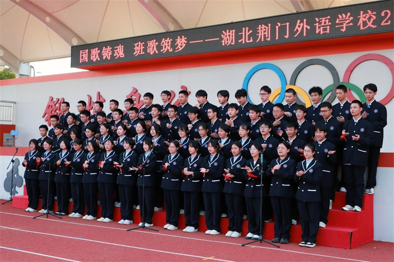 高中阶段是人生拔节孕穗的关键期。通过这次比赛同学们立志做红色基因的传承者,让爱国成为融入血液的自觉;做集体精神的锻造者,用班歌凝聚攻坚克难的团队力量;做全面发展的践行者,在艺术熏陶中涵养向美而生的品格。共同唱响“国歌铸魂”的信仰强音,谱写“班歌筑梦”的青春诗篇,为湖北荆门外语学校的明天奏响更加激昂的乐章!