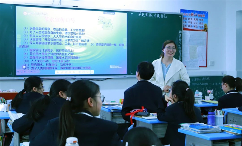湖北荆门外语学校作为荆门大家庭的一员,当以格物躬行的实践精神,在点滴的节水中共绘“一河碧水穿城过”的荆门新名片,共同书写“厚道荆门”的绿色答卷,真正践行习近平总书记“绿水青山就是金山银山”生态理念。