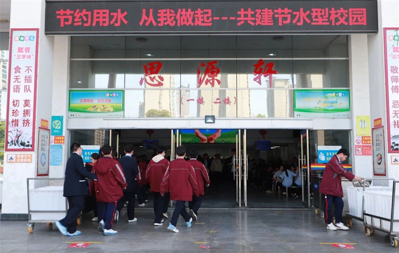 校内:食堂大屏幕滚动播放节水宣传标语