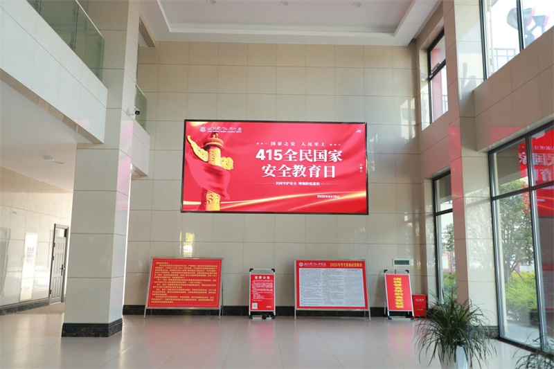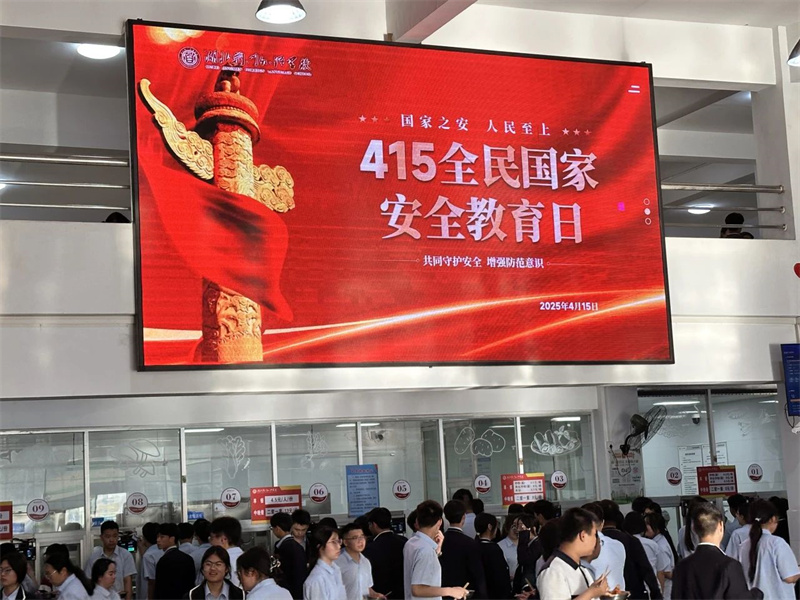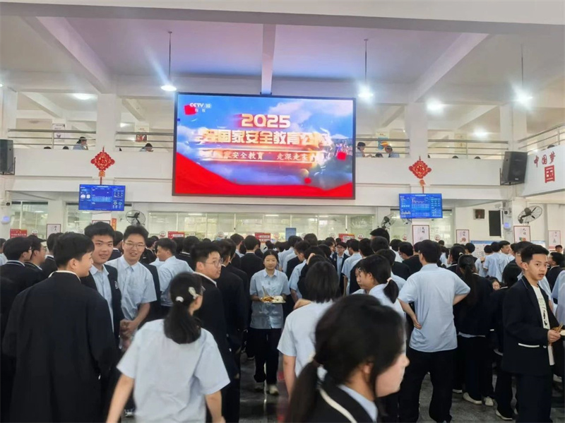 1、宣传发动:学校为加大宣传力度,充分利用校园广播、食堂及校门口的电子屏进行宣传,播放2025全民国家安全教育公开课系列视频;