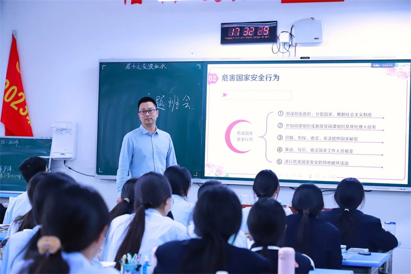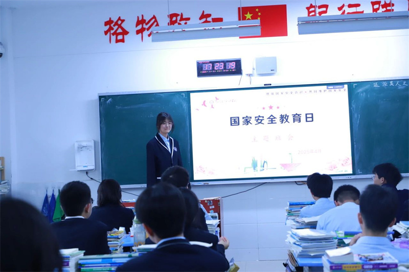 2、主题班会:“国家安全 人人有责”主题班会上班主任带领大家学习法律法规,结合案例解析“身边的安全隐患”;