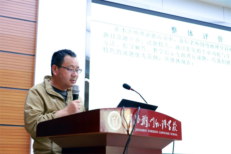 展示课结束后,钟祥市教研室高中地理兼职教研员胡俊老师对每位说题教师的展示课进行了细致点评,每位老师都展现了扎实的专业素养,教学设计科学合理,注重引导学生拓展延伸、注重反思与策略改进。