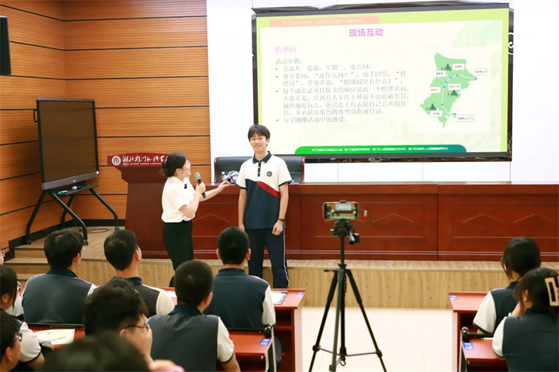讲座开场,张亚平医生组织学生们进行了现场互动。通过“逛情绪园”的方式,引导学生每人说出一个情绪名词,让学生认识日常生活中的情绪。同时,张亚平医生结合多项实例解析了“考前焦虑”的表现与成因,指出适度焦虑能激发潜力,但过度焦虑可能影响发挥,让学生对焦虑有了更为深刻的认知。