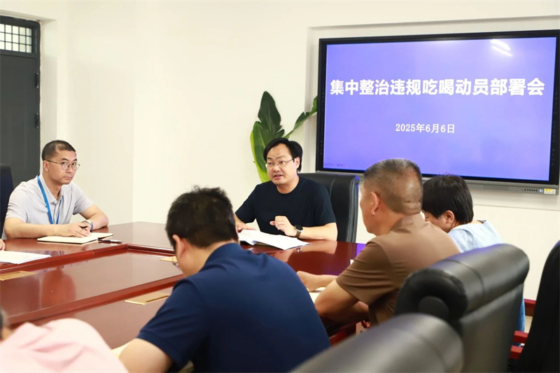 6月6日上午,湖北荆门外语学校召开集中整治违规吃喝动员部署会,校党委书记朱小炳主持学习并做工作安排,全体校领导、中层干部、党支部书记、备课组长参会。