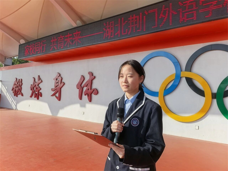 高二(11)班石茉妍同学作国旗下演讲,题目是《家校共育下的成长路》。