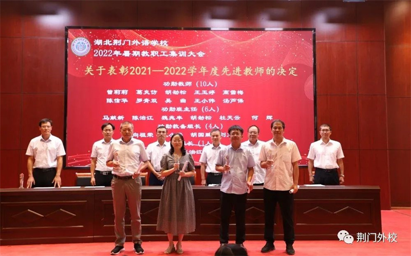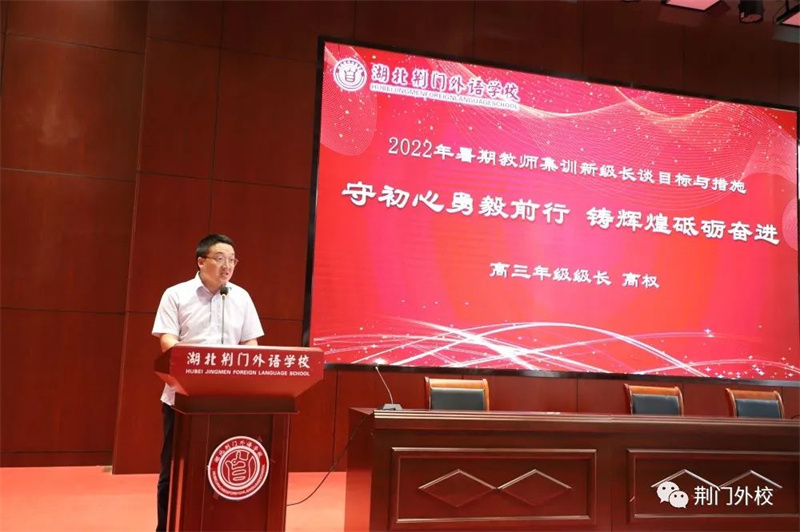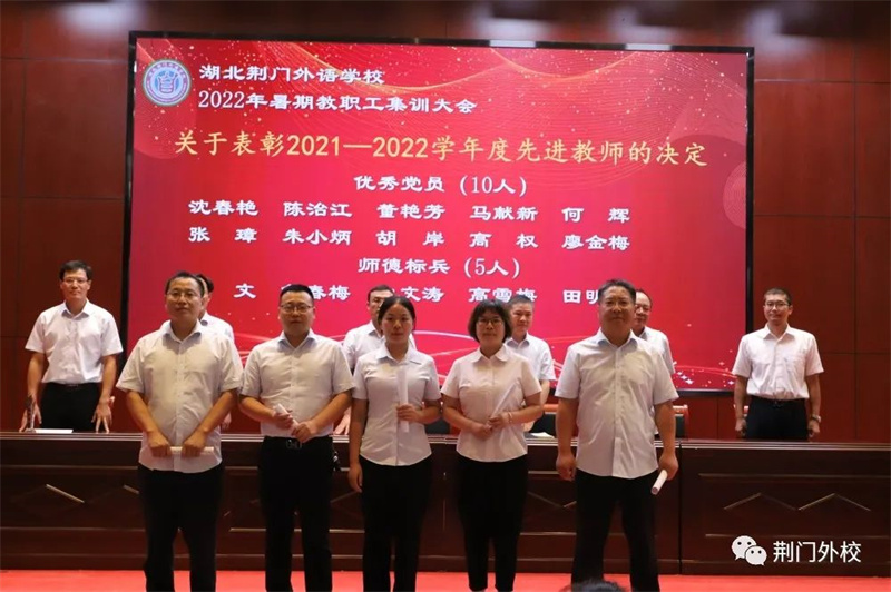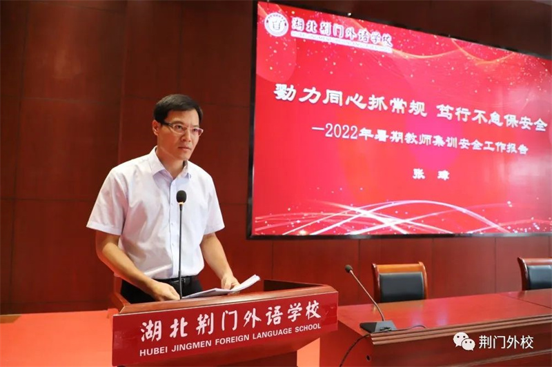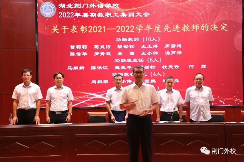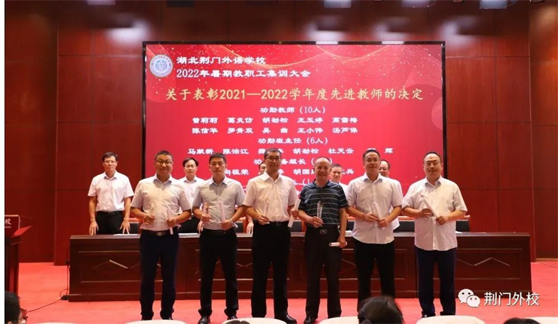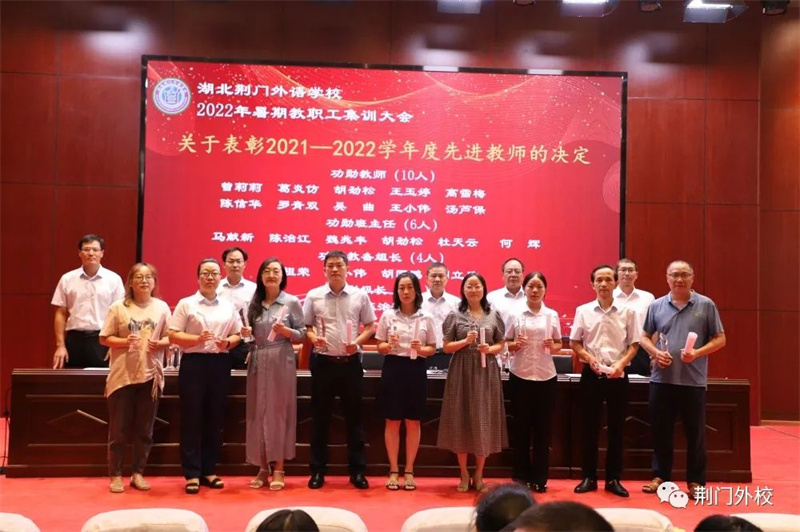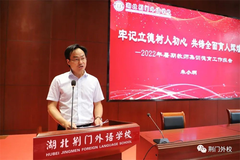 三尺讲坛写春秋,奋楫同舟新学年;千山万水已走过,勠力同心再出发。为深入学习贯彻习近平总书记关于教育工作的重要论述,推进实施教育部等七部门《关于加强和改进新时代师德师风建设的意见》,引导广大教师坚定理想信念、厚植爱国情怀、涵养高尚师德,坚守为党育人、为国育才职责使命,以优异成绩迎接党的二十大胜利召开,8月25日—27日湖北荆门外语学校精心组织全体教职工开展暑期集训活动。